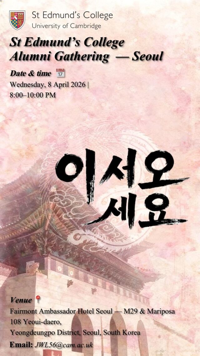 St Edmund’s College warmly invites alumni based in South Korea—and those traveling through—to join a special gathering in Seoul this spring to coincide with the Master’s visit. Reconnect with fellow alumni, meet new members of our global community, and enjoy a relaxed evening in one of the city’s most elegant venues.