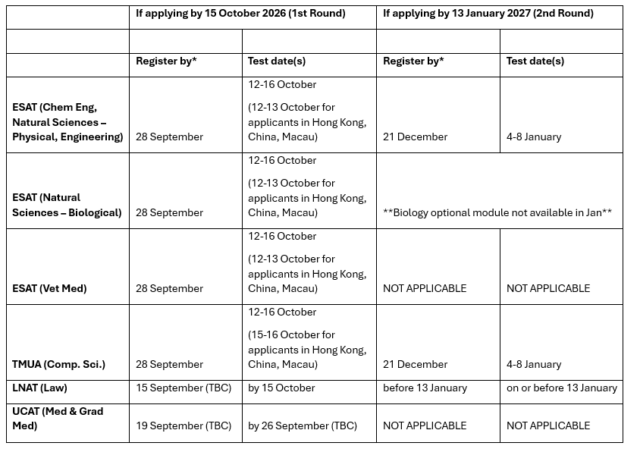 *Registration deadlines will be earlier for candidates requiring access arrangements – check with the body administering the test